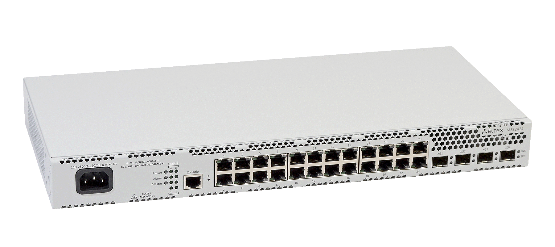 Eltex MES2424 — это 28-портовый гигабитный коммутатор доступа уровня 3, предназначенный для корпоративных сетей и сетей операторов связи. Он оснащен восходящими линиями связи 10G и расширенными функциями безопасности, обеспечивающими надежное и высокопроизводительное подключение